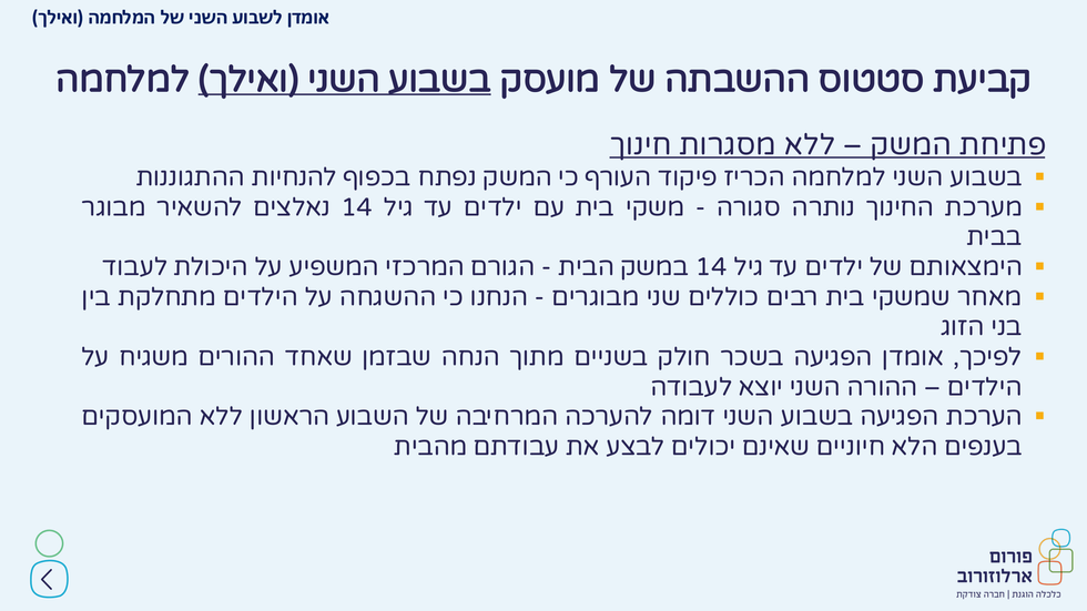 הערכת פגיעת המלחמה בציבור העובדים בישראל (מצגת)
